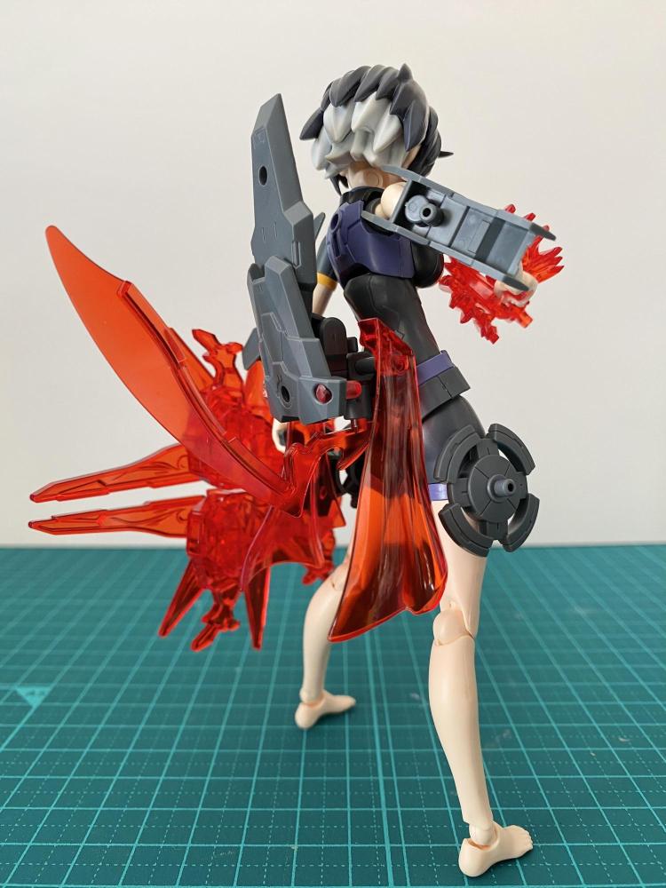 シーザーレジェンドガンダムのパーツを中心に英雄っぽい姿に見えるようにしました。腰のマントは前後に動きます。特徴的なバックパックを盾に見立てた時、自分は天才なのではと自惚れました…!