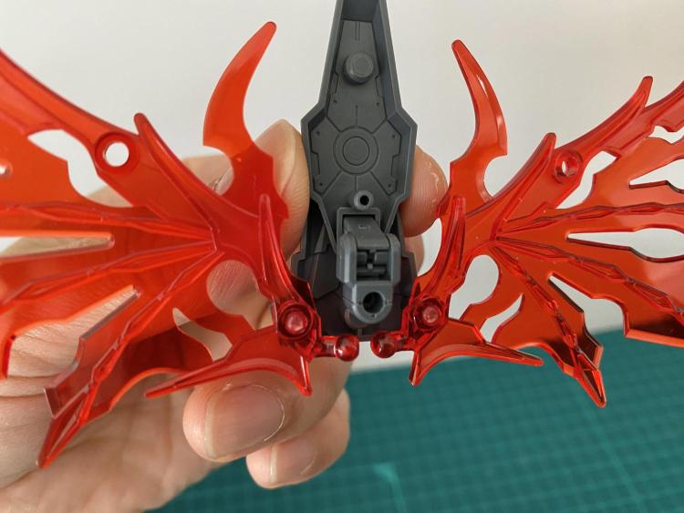 腰部のアーマーのクリアジョイントの裏から接続します。よって腰マントの稼動ができなくなります。
