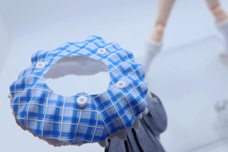 チェックのスカートパーツはテイオーのスカートの様な軟素材で、ダボに穴を合わせて挟んで保持する構成。