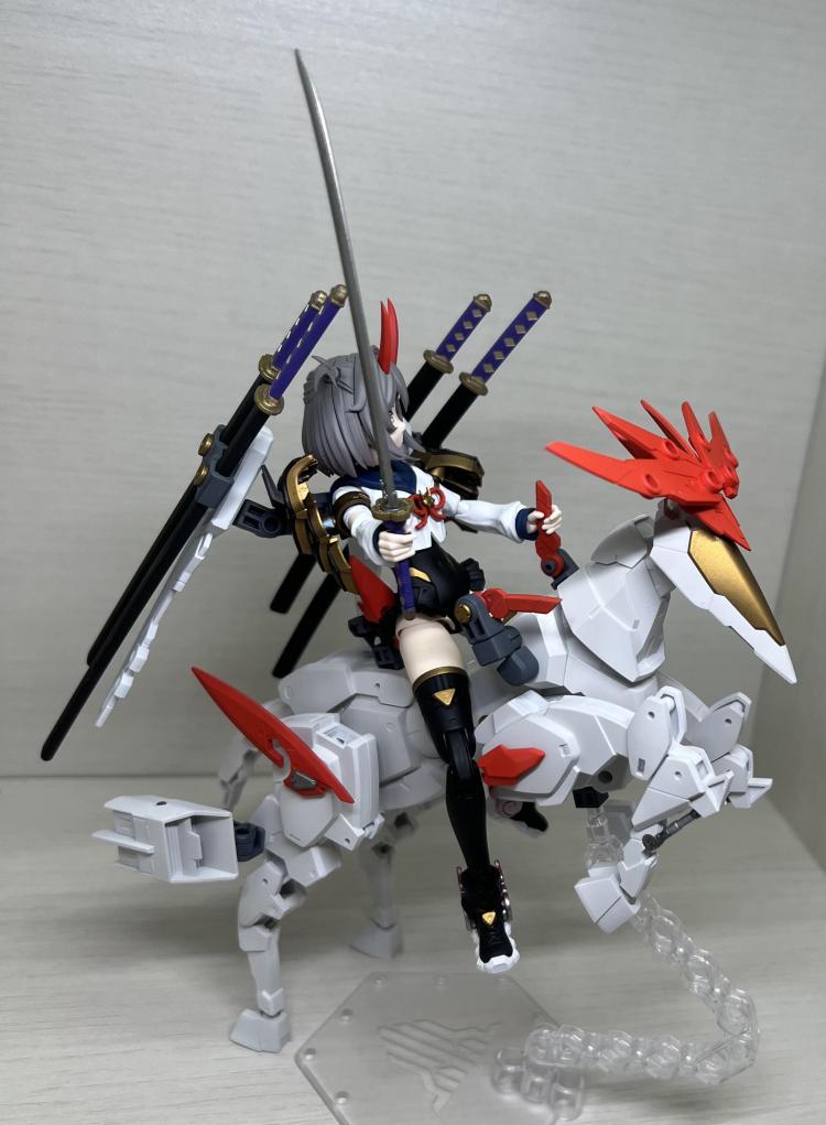 和風でかっこいい色、といえば暴れん坊将軍だと思い、白、赤、黒、金でまとめました。エグザビークルの馬もお手軽にかっこよくて作ってて楽しかったです。