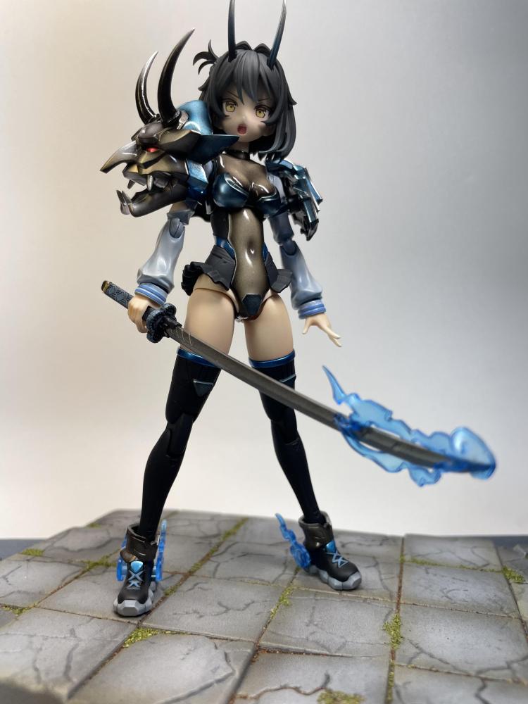 肩アーマーのブルーはシルバーを吹きクリアブルーを吹いています